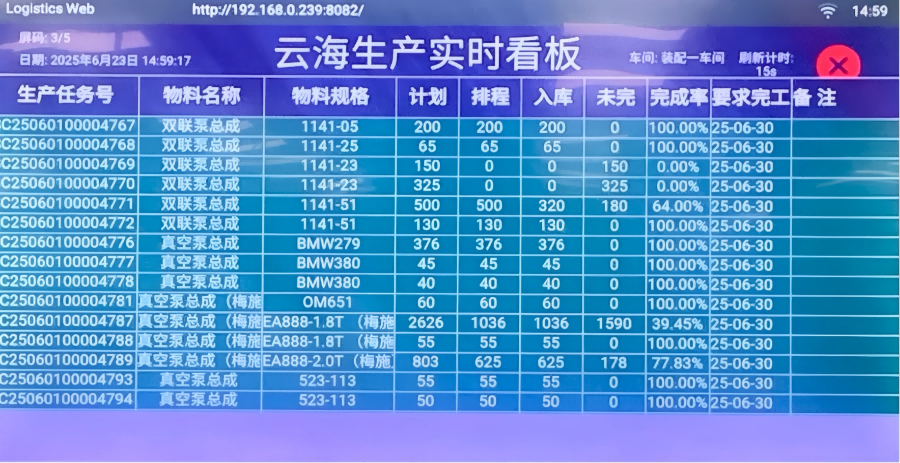 云海公司是集团内部MRP系统推进的首站,项目于 2024 年 8 月启动,先后开展了各部门对应职责梳理与重构、数据梳理与准备、运行逻辑流程及标准梳理、系统程序测试调整功能优化、试运行。建立起了全品类物料编码标准化体系,累计梳理 6000 + 物料主数据,同步重构安全库存动态管理模型。经过测试和流程验证,系统能够满足上线要求,6 月 30 日起云海通过MRP解算生产与采购计划,7月1日正式上线运行。